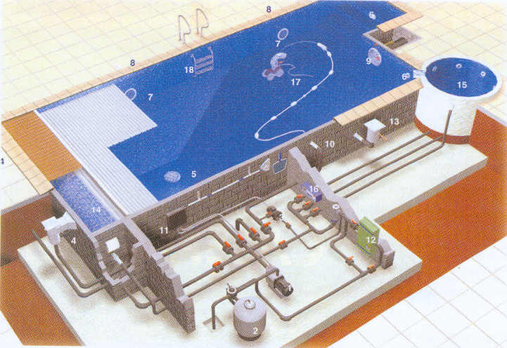 Para disponer de su piscina en perfectas condiciones debera disponer de un sistema de filtración estudiado para las condiciones de su piscina. Será distinto si es para uso público o privado ya que si su uso es público deberá cumplir las normativas vigentes. El sistema de filtración ha de disponer de una bomba con un caudal que dependerá del volumen de agua del vaso, al igual que el filtro o número de filtros que deberá de colocarse. También dispondrá de algún sistema para el tratamiento químico del agua. Este podrá ser automático o manual y del tipo que mejor se adapte a usted(cloro, electrolisis salina, ozono ...).